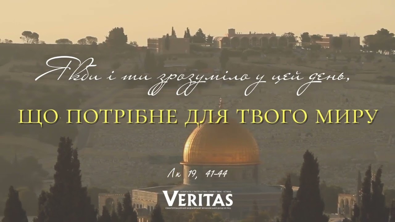 Того часу, коли Ісус наблизився і побачив мі сто Єрусалим, то заплакав над ним, кажучи: «Якби і ти зрозуміло у цей день, що потрібне для твого миру! Тепер же це сховано від очей твоїх. Адже прийдуть на тебе дні, – і твої вороги оточать тебе загородою, візьмуть тебе в облогу, тіснитимуть тебе звідусіль, повалять на землю тебе й твоїх дітей у тобі, не залишать каменя на камені в тобі, бо не зрозуміло ти часу своїх відвідин». Слово Господнє.