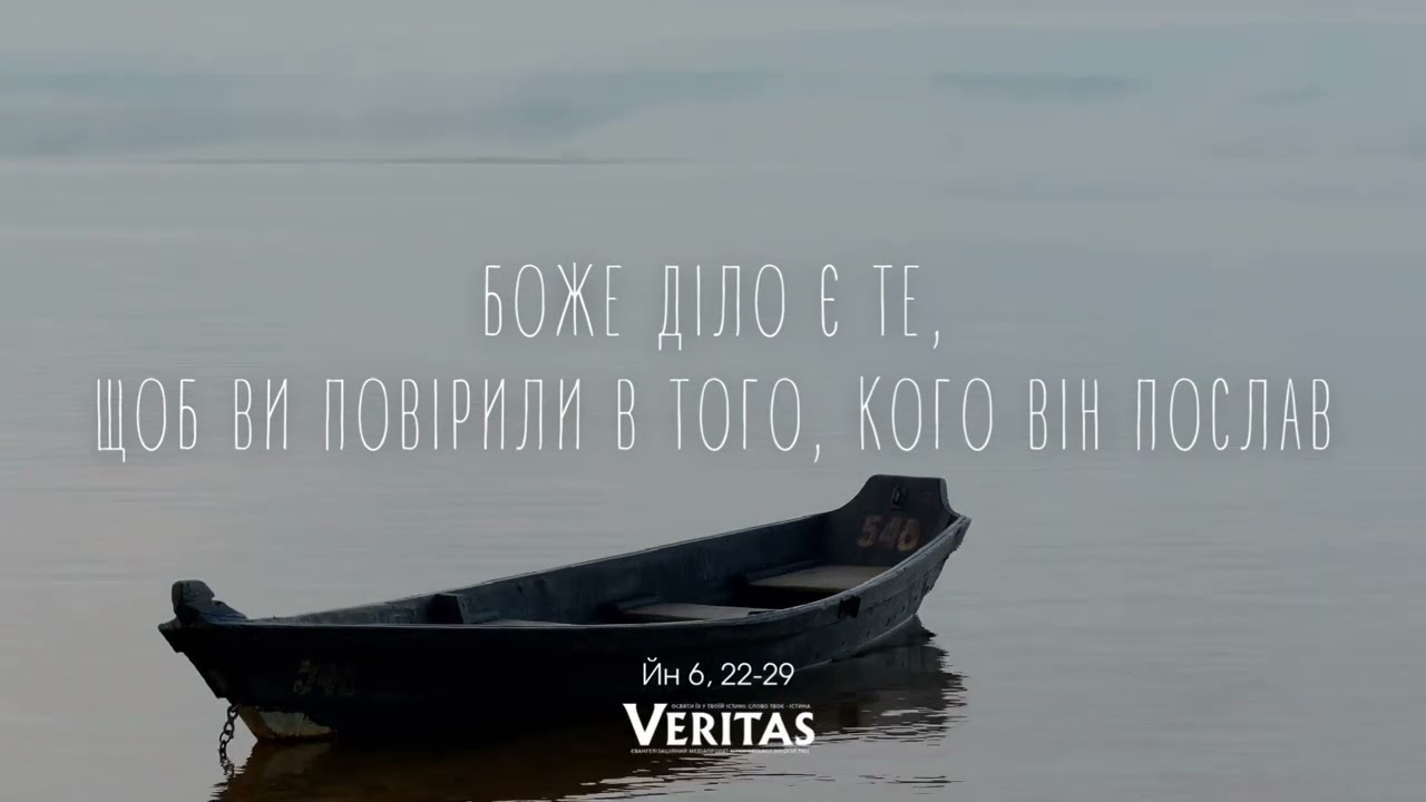Після того, як Ісус нагодував п’ять тисяч людей, учні побачили Його, як ішов морем. А наступного дня юрба, яка стояла на другому боці моря, побачила, що іншого човна там не було, крім одного, і що Ісус не входив до човна зі своїми учнями, а відправилися лише самі Його учні. З Тиверіади припливли інші човни поблизу того місця, де їли хліб після того, як Господь промовив подяку. Коли люди побачили, що там немає ні Ісуса, ні Його учнів, вони самі посідали в човни й попливли до Капернаума, шукаючи Ісуса. Коли знайшли Його на тому боці моря, сказали Йому: «Раввi , коли Ти прибув сюди?» У відповідь Ісус сказав їм: «Воістину, воістину кажу вам: ви шукаєте Мене не тому, що побачили знамення, але тому, що їли хліб і наситилися. Працюйте не на поживу, яка гине, але на поживу, яка залишається на вічне життя, яку дасть вам Син Людський. Адже Його Отець завірив, Бог!» Тож запитали в Нього: «Що ж нам робити, аби чинити діла Божі?» У відповідь Ісус їм сказав: «Боже діло є те, щоб ви повірили в Того, кого Він послав». Слово Господнє.