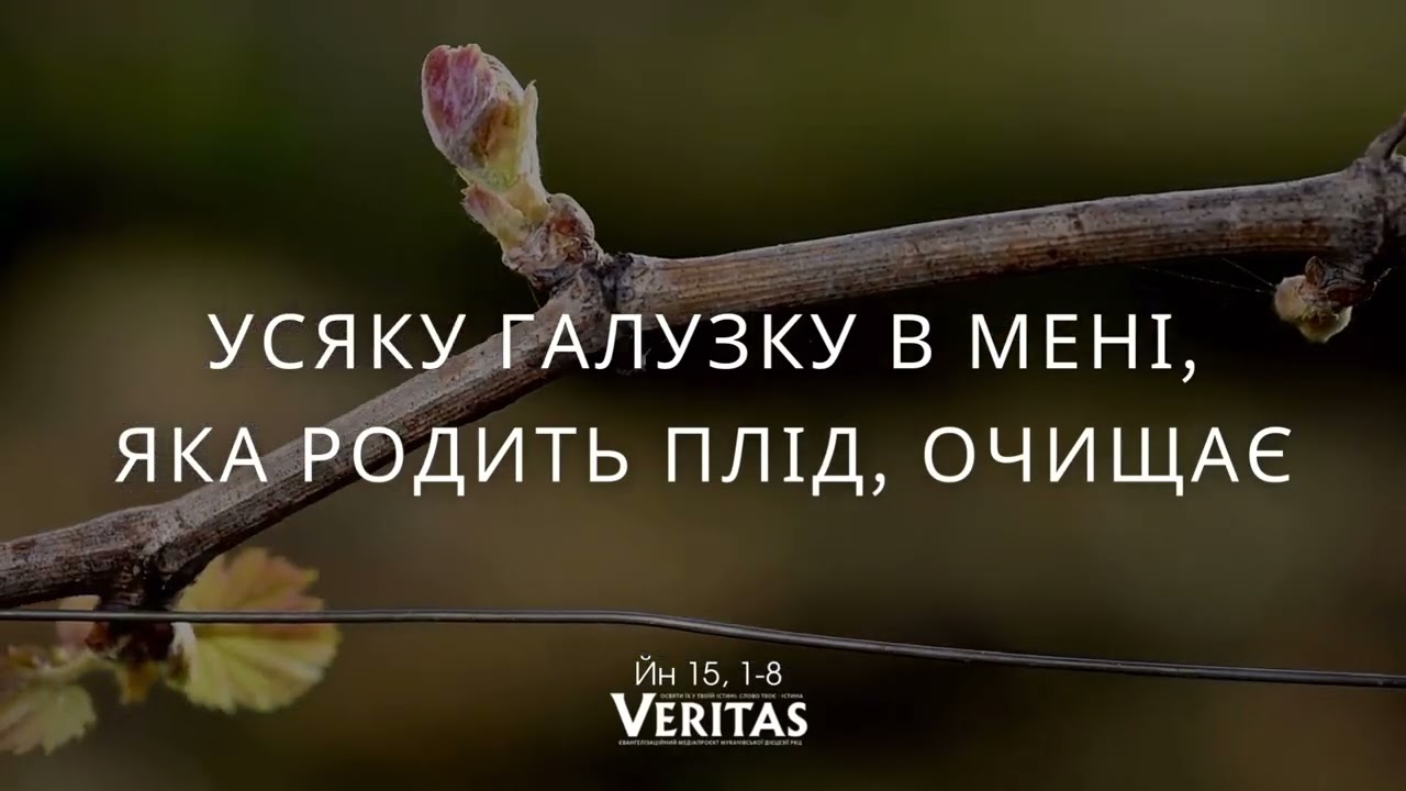 Того часу Ісус сказав своїм учням: «Я є правдива виноградна лоза, а Мій Отець – виноградар. Усяку галузку в Мені , яка не приносить плоду, Він відтинає; а всяку, яка родить плід, очищає, щоб більший плід приносила. Ви вже чисті через слово, яке Я вам сказав. Перебувайте в Мені , і Я – у вас. Як галузка не може приносити плоду сама по собі, якщо не буде перебувати у лозі , так і ви, якщо не будете перебувати в Мені . Я – лоза, ви – галузки. Хто перебуває в Мені , і Я в ньому, той приносить багато плоду, бо без Мене не можете робити нічого. Якщо хтось в Мені не перебуває, – він відкинутий геть, мов та гілка, і всох; їх збирають і кидають у вогонь, і вони згорають. Якщо ж будете перебувати в Мені , і Мої слова перебуватимуть у вас, то чого б тільки забажали, просіть – і станеться вам. У цьому прославлений Мій Отець, щоб ви приносили багато плоду і стали Моїми учнями». Слово Господнє.