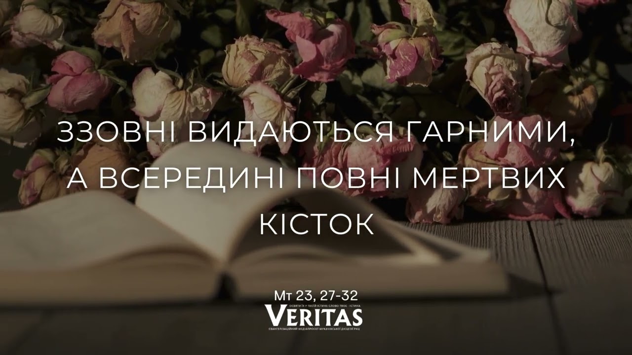 Того часу Ісус сказав: «Горе вам, книжники та фарисеї, лицеміри, бо ви подібні до гробів побілених, які ззовні видаються гарними, а всередині повні мертвих кісток і всякої нечистоти! Так і ви ззовні видаєтеся людям праведними, а всередині повні лицемірства й беззаконня. Горе вам, книжники та фарисеї, лицеміри, бо будуєте гробниці пророкам і прикрашаєте пам’ятники праведникам, і кажете: “Коли б ми жили в дні наших батьків, то не були б їхніми спільниками в пролитті крові пророків!” Отак свідчите самі собі , що ви є синами тих, хто вбивав пророків. Тож виповніть міру беззаконня ваших батьків». Слово Господнє.