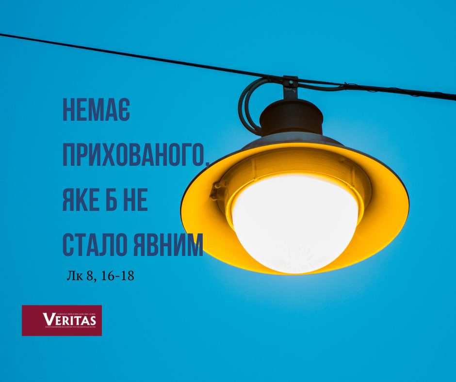 Того часу Ісус сказав натовпам: «Запаливши світильник, ніхто не накриває його посудиною, а також не ставить під лі жко, але ставить на свічник, щоб ті, які входять, бачили світло. Адже немає прихованого, яке б не стало явним, і немає таємного, яке б не стало відомим і яке б не вийшло на яв. Тож уважайте, як ви слухаєте: бо хто має, тому дасться, а хто не має, то й те, що начебто має, забереться від нього». Слово Господнє.