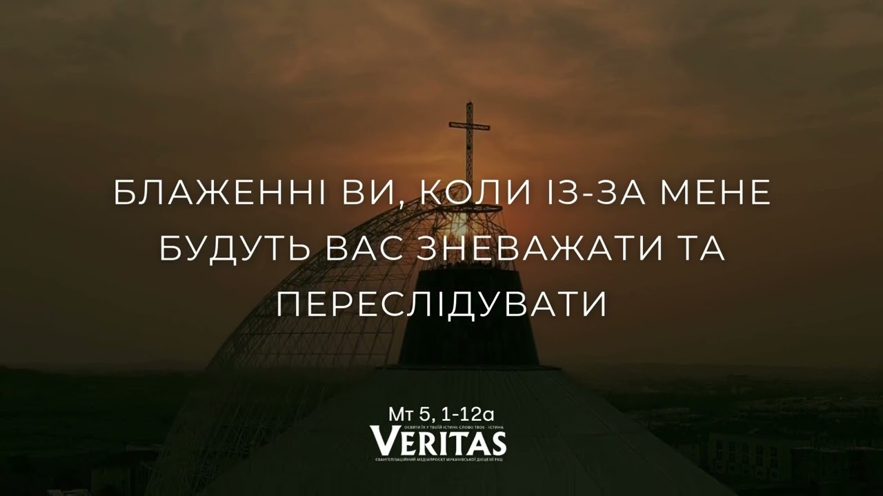 Того часу, побачивши натовпи, Ісус вийшов на гору; коли Він сів, до Нього підійшли Його учні. І, відкривши свої уста, Він навчав їх, промовляючи: «Блаженні убогі духом, бо їхнє Царство Небесне. Блаженні ті, хто плаче, бо вони будуть потішені. Блаженні лагідні, бо вони успадкують землю. Блаженні голодні й спраглі праведності, бо вони наситяться. Блаженні милосердні, бо вони зазнають милосердя. Блаженні чисті серцем, бо вони Бога побачать. Блаженні ті, які творять мир, бо вони синами Божими названі будуть. Блаженні переслідувані за праведність, бо їхнє Царство Небесне. Блаженні ви, коли із-за Мене будуть вас зневажати та переслідувати, і, оббріхуючи, казати всяке зло проти вас. Радійте й веселіться, бо велика нагорода ваша на небесах». Слово Господнє.